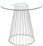 Add a bold touch to your dining area with this chic Gio counter height table. Featuring a round, clear tempered glass tabletop and a polished metal base with a wired contemporary design, this dining table transforms your dining space into a stylish haven.
