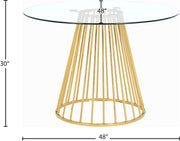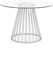 Add a bold touch to your dining area with this chic Gio dining table. Featuring a round, clear tempered glass tabletop and a polished metal base with a wired contemporary design, this dining table transforms your dining space into a stylish haven.