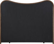 Sleek lines and soft curves come together in the Arvada linen textured upholstered bed, where soft neutral tones and a sculptural silhouette create a modern yet timeless centerpiece. Wrapped in rich linen and supported by a solid wood base in a brown walnut finish, this bed balances comfort and craftsmanship with ease. Perfect for adding a grounded, organic feel to any bedroom.