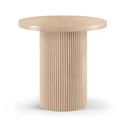 Even the smallest, most intimate dinner feels like an event when you're seated at this Belinda table. Crafted with a solid wood base and a finish oak wood veneer MDF top, its round top with fluted base exudes contemporary charm. The table top's thickness and natural wood grain variations add unique character, ensuring each piece is one-of-a-kind.