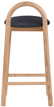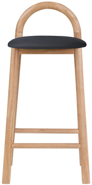 Make them want to stay 'till closing time when you add one or more of these Calvin vegan leather counter stools to your home bar or kitchen counter. These handsomely rugged stools have an uber modern look to them, making them well at home in a variety of decorative settings. The vegan leather seat is soft and comfy, so folks want to sit a spell and enjoy themselves. The natural finish solid wood frame is durable and sturdy, and there's room to rest your feet around the bottom perimeter for added usability and comfort.