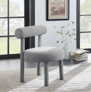 Give your home a contemporary makeover with this Parlor boucle fabric accent chair. The Parlor accent chair from Meridian Furniture features rich boucle fabric upholstery, providing you and your guests with utmost comfort. Its solid wood frame ensures sturdy construction, supporting just about anyone who wishes to kick back and have a seat. Its rounded design gives a chic, modern touch to any living space, making it a perfect addition to your furniture collection.
