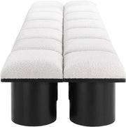 Bring valuable seating and remarkable style to your space with this Pavilion Boucle Fabric Bench, an exquisite balance of style and usability for the entryway, bedroom, and beyond. Crafted from oak veneer with a black finish, this bench has a 4-inch-thick seat cushion that's channel-tufted for a touch of luxury. The bench's columnar bases add a dash of Art Deco design, making it a captivating focal point in any room.