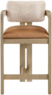 Ravina - Vegan Leather and Linen Textured Fabric Upholstered Counter Stool - Cognac / Stained Natural