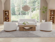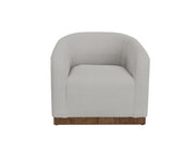 Wooden Frame & Base, Armchair. The Suomi Collection, distinguished by its flowing form, embodies the Zen-inspired Japandi style. This armchair's minimalist design is harmoniously complemented by its wooden base crafted from pine wood, with its wraparound back seamlessly merging into rounded arms, creating a cradle for an exceptionally thick and comfortable cushioned seat