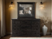 Bedroom Mirror. Drawing inspiration from transitional design, the Terra collection embodies the effortless elegance of its clean, sturdy shapes and the charming rustic grain of solid pine wood. With a tasteful deep finish, this collection represents a harmonious fusion of modern and traditional elements, making it a timeless addition to your home.
