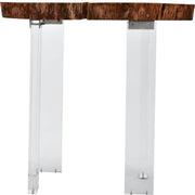 Woodsy charm collides with modern lines in the design of this Woodland end table. This table is anything but demure and is bound to attract attention from all angles, whetheryou'rere using it as a spot to display a lamp or framed print or to hold a glass of wine while you relax and unwind. Crafted from rich, live-edge acacia wood, this table rests on acrylic legs for a modish finish.