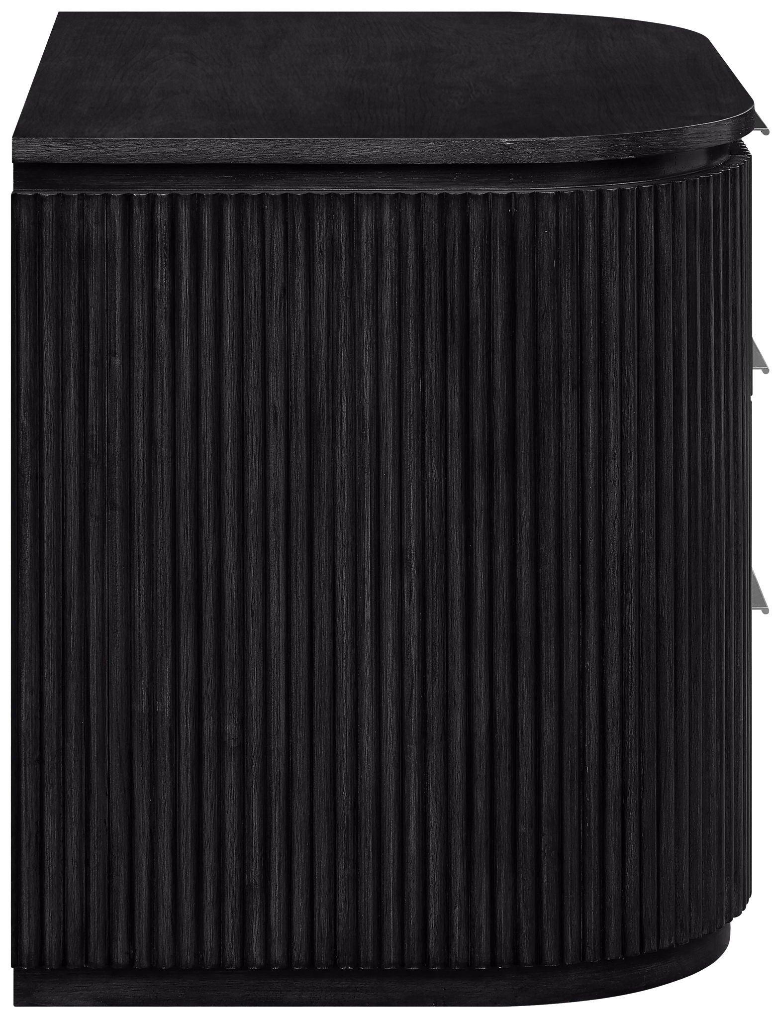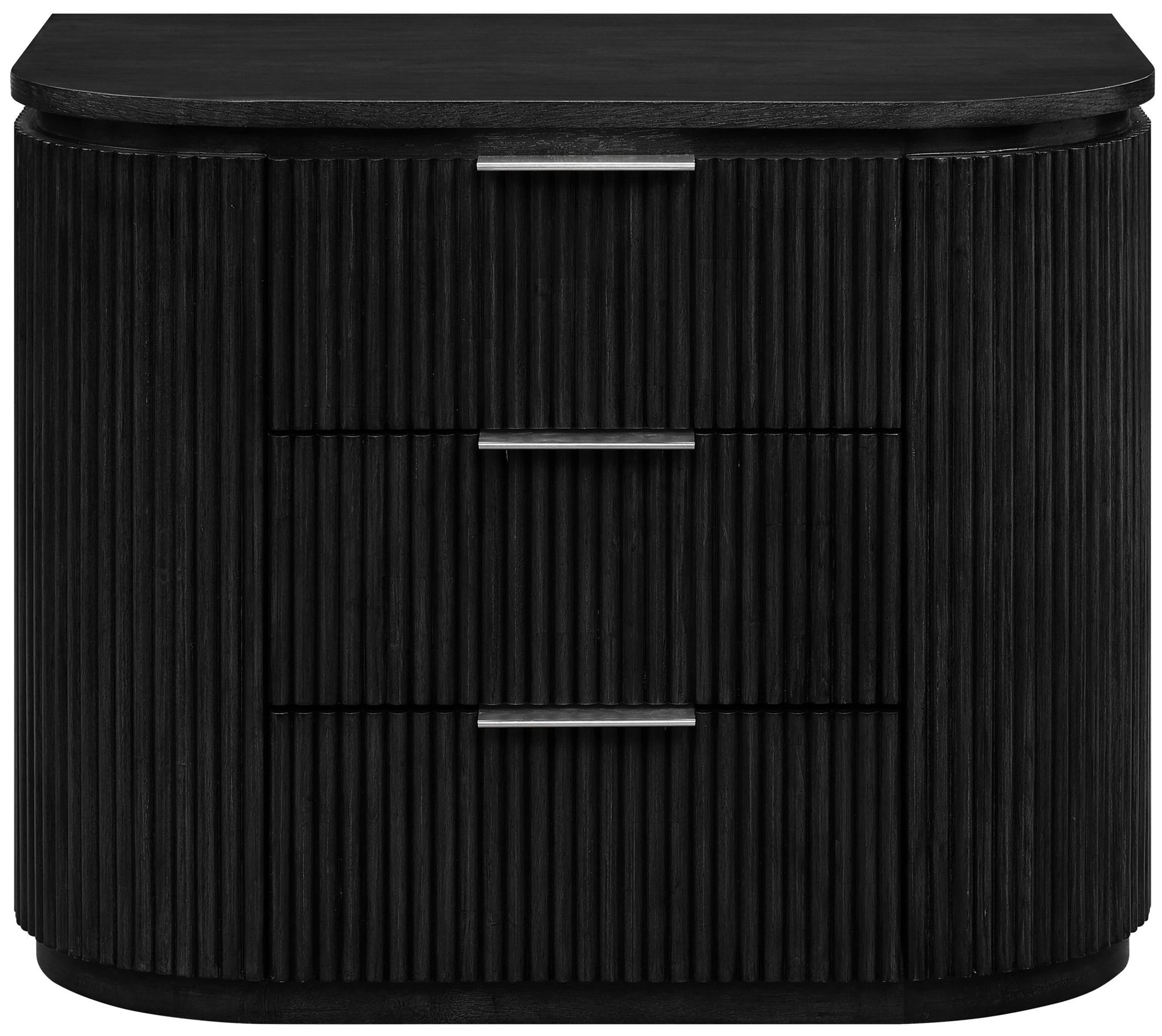Texture takes the lead with the Astrid solid wood and oak veneer nightstand. Wrapped in sleek fluted wood and finished in a deep, moody tone, this contemporary design is both bold and refined. Whether styled in a bedroom or living space, it delivers effortless storage with standout style.