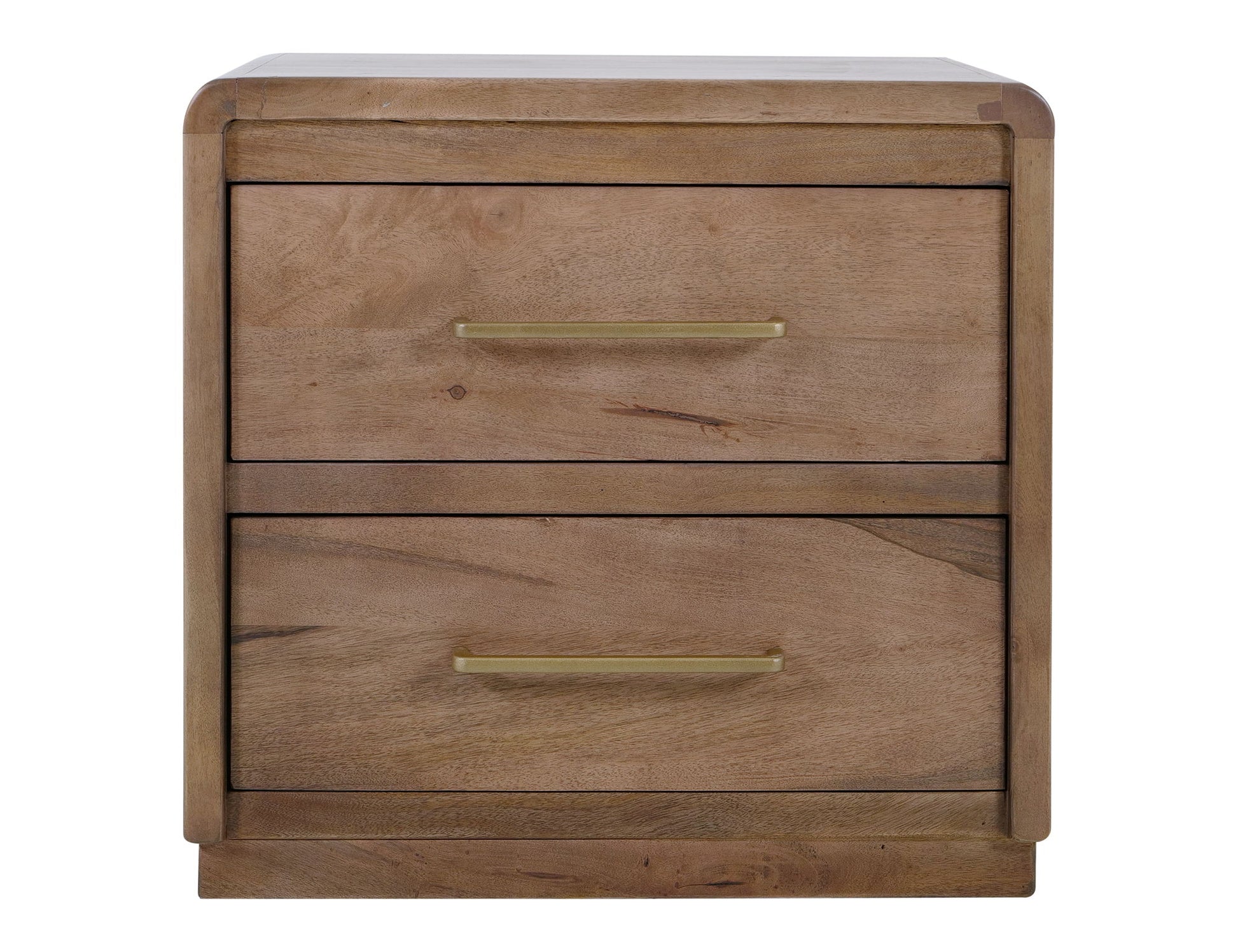 2 Drawer Nightstand. Introducing The Mezquite Collection: This exquisite collection is meticulously handcrafted from sustainable mango wood. Its light distressed finish gracefully accentuates the natural richness of the wood grain, while its captivating and eclectic design elevates it to a true statement piece that can effortlessly enhance the ambiance of any room in your home.
