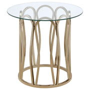 This coffee table set features a round design with clear tempered glass tops supported by sturdy metal frames. The frames are finished in electroplated chocolate chrome, delivering a sophisticated, deeper brass tone. The geometric base design on both tables adds a contemporary touch, while the tempered glass tops provide durability and easy maintenance. These tables offer functional elegance, making them an excellent addition to any living room or lounge area. Key Features: • Coffee table set with round clear tempered glass tops for durability and style • Electroplated chocolate chrome metal frames with a polished, sleek finish • Geometric base design with smooth, curving lines for a chic modern look • Strong and sturdy metal frames offer support and long-term stability • Clear tempered glass tops are easy to clean and add a modern touch • Perfect for living room or lounge areas, combining style and functionality