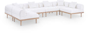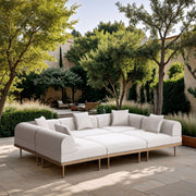 Sleek lines and soft water-resistant fabric bring contemporary style to the Laguna outdoor patio modular sectional. Crafted with a natural teak finish aluminum frame and quick-dry foam, it's built for ultimate outdoor relaxation. Rearrange or add to the set for endless configurations, creating a versatile lounging experience tailored to your space.