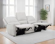 Everyday luxury finds its rhythm in this power reclining sofa, blending ease and elegance in perfect measure. Sumptuously padded with generously filled cushions, it invites you to lean back with the touch of a button. Smooth chenille upholstery in dove grey wraps the sculpted silhouette, while a hidden power mechanism reclines with quiet control. Built with an anti-pinch safety feature that pauses motion upon contact, this sofa delivers comfort with peace of mind. Key Features: • Power reclining sofa features plush cushions and padded seating for deep comfort • Dove grey chenille upholstery adds softness with a modern monochrome palette • Dual push-button recliners offer smooth adjustable positions at your fingertips • Sculpted seat and backrest contours support a relaxed lounging experience • Anti-pinch safety mechanism halts movement if resistance is detected mid-recline • Built on a wood and metal frame with pine and plywood for strength and support
