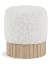 Indulge in the luxurious texture of the Veranda Boucle Fabric Ottoman/Stool. It boasts a rich boucle fabric that is paired with an elegant and sturdy solid wood base, featuring a natural finish that highlights the beautiful wood grain patterns. This unique combination of materials creates a perfect blend of style and durability, making it an ideal addition to any modern or traditional interior design.