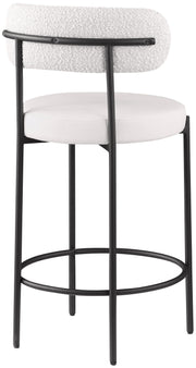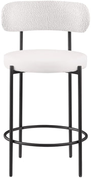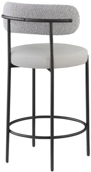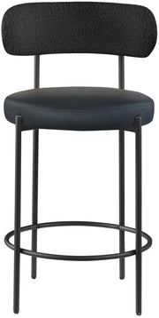 Make family, friends, and guests want to stay 'till closing time when they're seated on these Beacon vegan leather and boucle fabric bar stools/counter stools. These handsome stools are just the thing your kitchen counter or home bar is missing, with their ultra-modern design and beautiful look. The curved backs support the body while you sip a frosty cold one or nosh on some breakfast fare. A matte metal frame gives the stools' design durability while the black vegan leather seat and boucle fabric back adds a touch of softness and comfort.