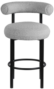 Give your kitchen counter or home bar a fresh face with this Bordeaux boucle fabric stool. This stool features rich boucle fabric upholstery on the curved back and seat, so guests sit comfortably for pancake breakfasts or their favorite spirits. The iron metal frame is durable, tough, and sturdy, so it holds up to long-term enjoyment by family and friends. A matte finish lends the stool an uber modern feel.