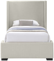 Treat yourself to a fresh new look in your bedroom sanctuary with this Oxford linen bed. This bed features an oversized wing-back headboard for a majestic appearance and is upholstered in rich linen fabric all over, adding an element of elegance to your room.