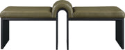 Seamlessly blending modern elegance with timeless craftsmanship, the Delphine vegan leather upholstered bench has a unique curvature to uplift any space. Upholstered in soft vegan leather, this bench offers a sleek, refined look complemented by its black finish and oak veneer base. Crafted from a mix of solid wood and MDF, its contemporary design provides both durability and style, making it a versatile statement piece.