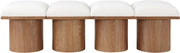 Bring valuable seating and remarkable style to your space with this Pavilion boucle fabric bench, an exquisite balance of style and usability for the entryway, bedroom, and beyond. Crafted from oak veneer with a walnut brown finish, this bench has a 4-inch-thick seat cushion that's channel-tufted for a touch of luxury. The bench's columnar bases add a dash of art deco design, making it a captivating focal point in any room.