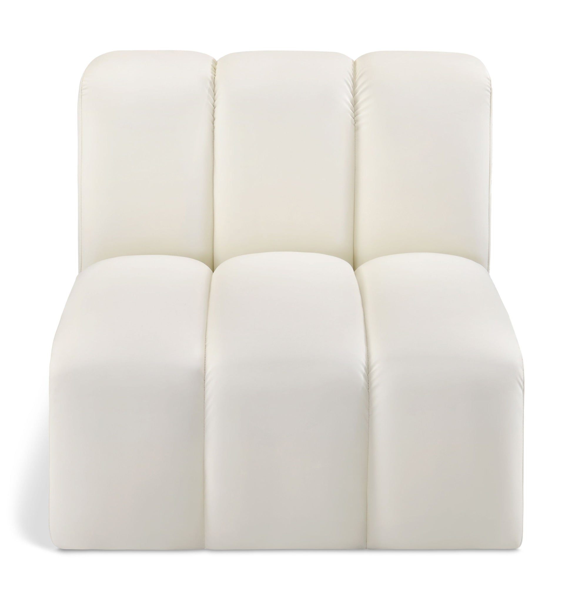 Unleash modern opulence with the Arc Vegan Leather Straight Chair. Crafted for the modern connoisseur, this chair injects an air of refined luxury into any space. Its sleek silhouette, upholstered in supple vegan leather, exudes timeless sophistication while the deep channel tufting adds textural intrigue, further elevating the chair's visual appeal. The modular design makes it a versatile chameleon, effortlessly adapting to your evolving needs and preferences. Whether you envision it gracing a chic living room corner, basking in the glow of a bedroom window, or adding a touch of drama to a home office, the Arc seamlessly complements your unique interior aesthetic.