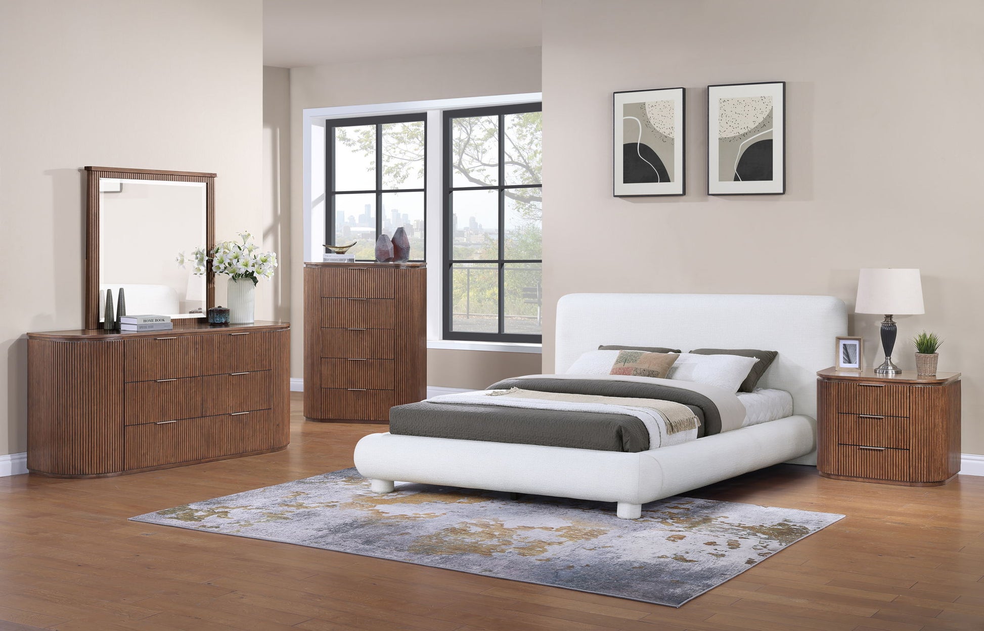 Texture takes the lead with the Astrid solid wood and oak veneer chest. Wrapped in sleek fluted wood and finished in a deep, moody tone, this contemporary design is both bold and refined. Whether styled in a bedroom or living space, it delivers effortless storage with standout style.