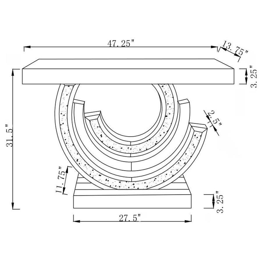 Make a dramatic statement with this glitzy mirrored console table, designed to dazzle from every angle. Its curved, swirl-inspired base creates a stunning three-dimensional look, adorned with smoke grey faux gemstones for extra sparkle. A mirrored tabletop and base amplify the shine, while the silver finish adds a sleek, modern touch. Perfect for adding glam to an entryway or living room.