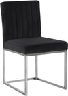 Take dining to a posh new level with this Giselle Dining Chair. A boxy design makes it a nice addition to contemporary spaces, and it's armless design makes it easy to get into and out of with ease. The seat and back are upholstered in rich velvet for a lavish vibe and a pop of sumptuous color to liven up your room, and both are padded well to make sure diners stay comfy while they enjoy their meal. The metal frame is finished in silver for added beauty and aesthetic appeal.