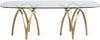 Gather the gang and seat them in elegance around the spacious confines of this Madelyn dining table. This table offers oodles of elbow room for diners to get comfortable over meals large and small. The thick-cut glass top offers a sophisticated take that elevates dining to the next level while a finish on the iron metal frame ensures an affluent look that diners can really appreciate. Pair the table with the matching chair from the same collection for a cohesive finish.