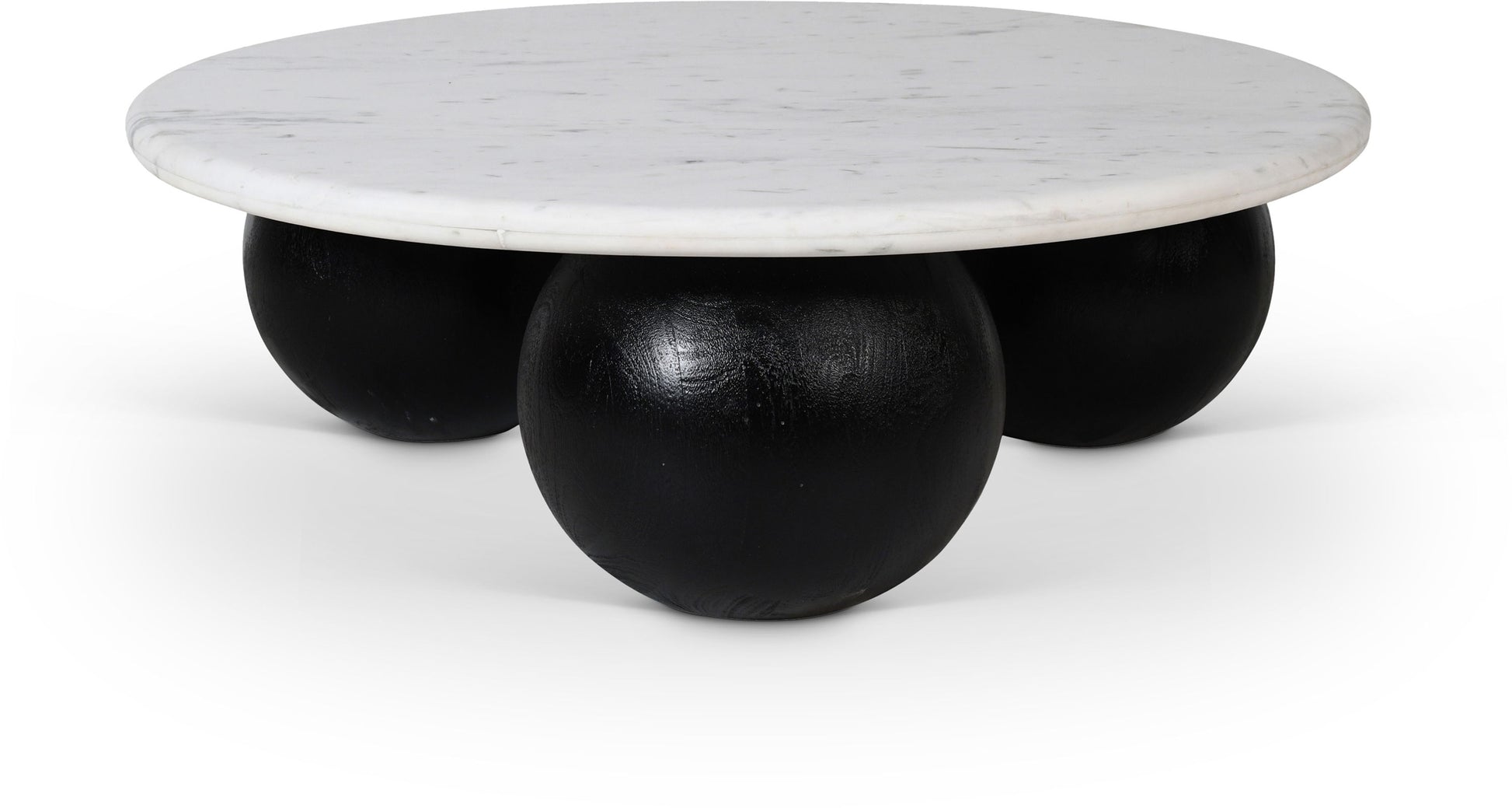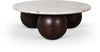 Revolutionize your space with the marble Treviso coffee table, presenting a luxurious sofito genuine marble top and solid mango wood walnut-finished bases. This table combines elegance with robustness to ensure your space radiates sophistication and charm. The three round ball-shaped bases offer a unique Art Deco design that captures attention, making this coffee table the perfect centerpiece for any living room.